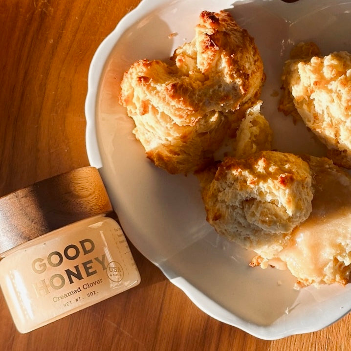 Indulge in the premium taste of our raw and pure Creamed Clover Honey. Using our unique creaming method, Good Honey’s creamed clover is whipped and chilled to perfection, creating a luxuriously smooth and spreadable texture.